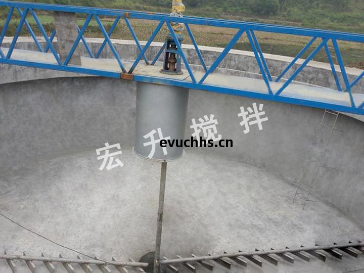 中心傳(chuan)動刮泥(ni)機原(yuan)水經(jing)中心配(pei)水筒(tong)布(bu)水後(hou)呈輻(fu)射(she)流向(xiang)池子(zi)周邊(bian)溢(yi)水槽(cao),隨(sui)著流速的降(jiang)低(di),水體中的懸浮物(wu)被(bei)分離而沈降於(yu)池(chi)底,上(shang)清(qing)液(ye)通過(guo)溢(yi)流堰(yan)板由(you)出(chu)水槽(cao)排(pai)出(chu)池外(wai)。